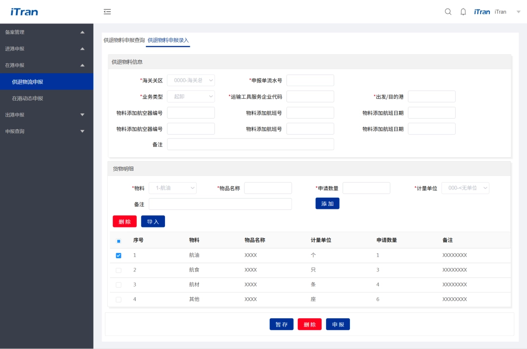 运输工具申报